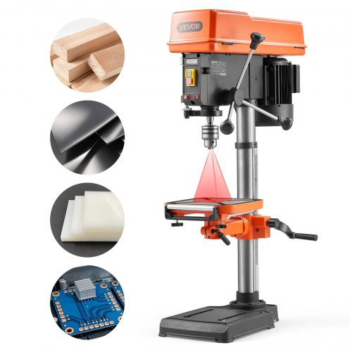 VEVOR 305 mm-es asztali fúrógép, 550 W, Asztali fúrógép, 340–2200 fordulat/perc változtatható sebességgel, 0–45°-ban dönthető munkaasztal, lézerrel és LED munkalámpával, asztali fúrógép, famegmunkáláshoz, fémmegmunkáláshoz