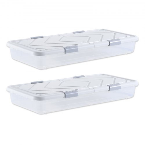 • Extra nagy kapacitás: Ez az ágy alatti tároló 95 x 52 x 14 cm méretű, és akár 22 kg-ot is elbír. A standard ágyak alá is elfér, három egység függőlegesen egymásra rakható. Tágas kapacitása cipőket, játékokat, ruhákat, könyveket és egyéb nehéz tárgyakat is elbír. Masszív, stabil és tartós.