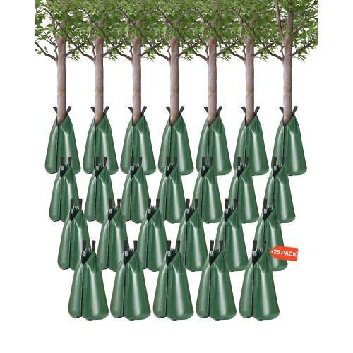 • Elősegíti a fák egészséges növekedését: Minden öntözőzsák akár 75,7 liter (20 gallon) vizet is képes befogadni, amelynek fokozatos kiürülése általában 5-9 órát vesz igénybe. Ez a lassú felszívódású öntözőrendszer biztosítja, hogy a víz mélyen behatoljon a talajba, közvetlenül táplálva a gyökereket. Ideális frissen átültetett fákhoz vagy a forró nyári hónapokban, segít a fák hidratáltságának megőrzésében és virágzásában.