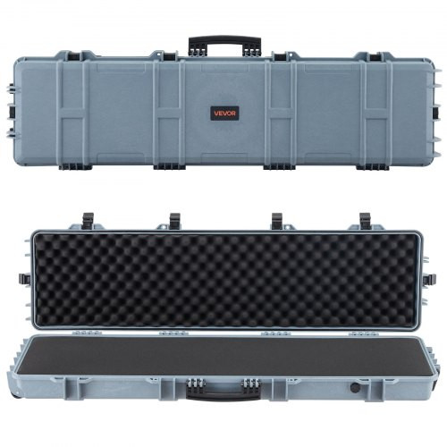 VEVOR kemény puskatok, zárható puskatok előre vágott habszivacsokkal, 138 cm-es mozgatható fegyvertároló kerekekkel, IP67 vízálló és porálló pisztolytároló puskához, sörétes puskához, airsoft fegyverhez, szürke