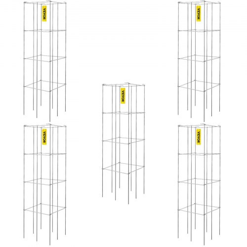 VEVOR paradicsomkalitkák, 29,4 x 29,4 x 117,5 cm, 5 db-os négyzet alakú növénytartó ketrec, ezüst PVC-bevonatú acél paradicsomtornyok kúszó zöldségekhez, növényekhez, virágokhoz, gyümölcsökhöz