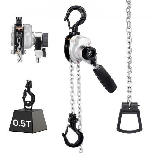 VEVOR kézi karos láncos emelő, 1/2T 500KG teherbírású, nagy teherbírású, 3M emelésű, G80 ötvözött acél lánc, dupla kilincses mechanikus fékkel, 360°-ban forgó horgokkal, raktárépület-garázshoz