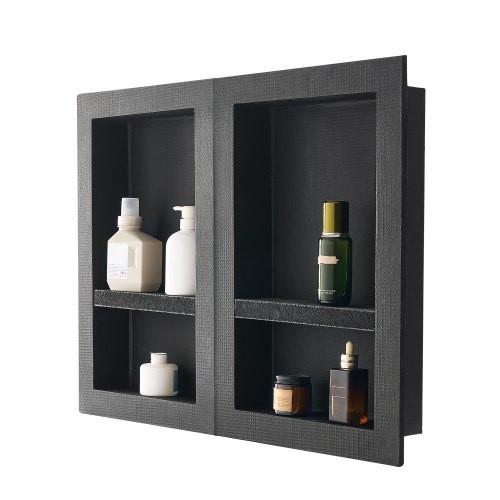 VEVOR zuhanyfülke, 40,6 x 61,0 cm + 40,6 x 61,0 cm süllyesztett fali fülke mozgatható polccal, 10,2 cm vastag modern szappan- és sampontároló, szögletes sarkok, vízállóan lezárt, fekete, fürdőszobába