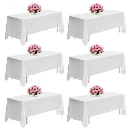 VEVOR fehér terítők téglalap alakú asztalokhoz, 6 darabos csomag, 70 x 120 hüvelyk, újrafelhasználható és mosógépben mosható terítők, gyűrődésálló poliészter szövetből készült asztalterítők esküvőkre, partikra, bankettekre
