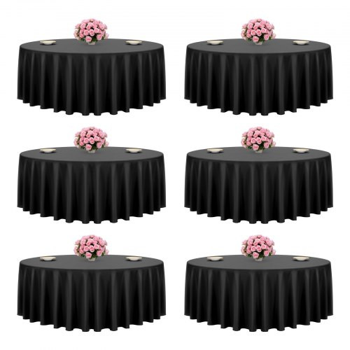 VEVOR fekete kerek terítők 6 db-os csomagban, 120 hüvelyk átmérőjű, folt- és gyűrődésálló, mosógépben mosható terítők, poliészter szövetből készült asztalterítők esküvőkre, partikra, bankettekre, hivatalos eseményekre