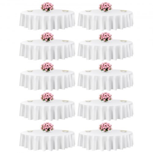 VEVOR fehér kerek terítők 10 darabos csomag, 90 hüvelyk átmérőjű, folt- és gyűrődésálló, mosógépben mosható terítők, poliészter szövetből készült asztalterítők esküvőkre, partikra, bankettekre, hivatalos eseményekre