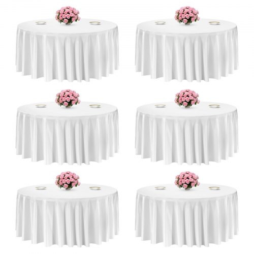 VEVOR fehér kerek terítők 6 db-os csomagban, 132 hüvelyk átmérőjű, folt- és gyűrődésálló, mosógépben mosható terítők, poliészter szövetből készült asztalterítők esküvőkre, partikra, bankettekre, hivatalos eseményekre