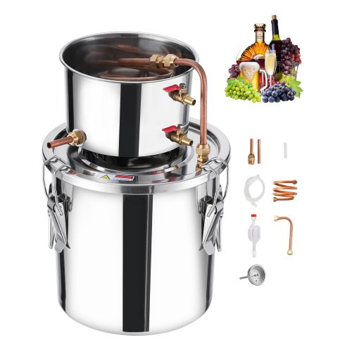VEVOR alkohollepárló, 3 gallon / 11,4 l rozsdamentes acél víz-alkohol lepárló réztekerccsel, otthoni sörfőzési finomító erjesztő készlet hőmérővel, borhoz, whiskyhez, brandyhez, ezüst