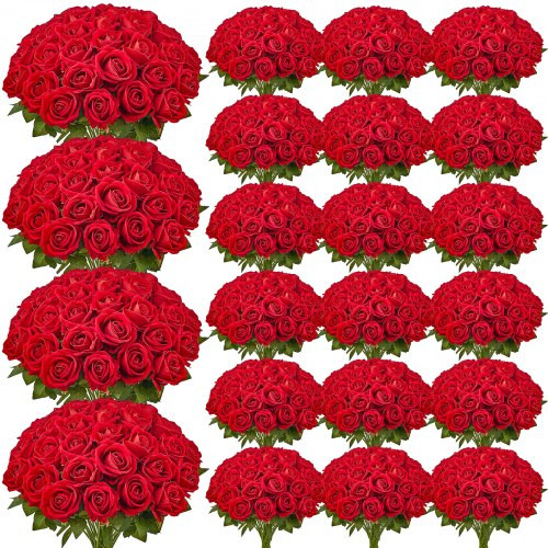 VEVOR művirágok, 500 db valódi kinézetű piros habszivacs műrózsák ömlesztett formában, műpiros menyasszonyi zuhany szárral barkács esküvői csokrokhoz, otthoni asztaldíszekhez, partiasztalok dekorációjához