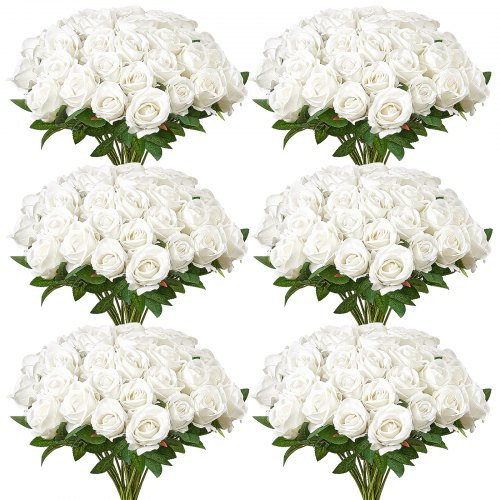 VEVOR művirágok, 120 db valódi kinézetű fehér habszivacs műrózsák, ömlesztett, fehér mű menyasszonyi zuhany szárakkal, barkács esküvői csokrokhoz, otthoni asztaldíszekhez, partiasztalok dekorációjához
