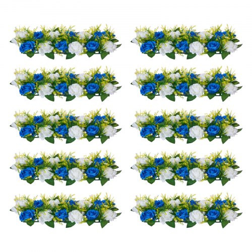 VEVOR Virággömb Dísz Csokor 10 db, 500 x 220 mm Művirággömbök Esküvői Asztaldíszek, Műrózsa Díszek Esküvői Asztaldíszhez Lakberendezéshez, Kék és Fehér Rózsa