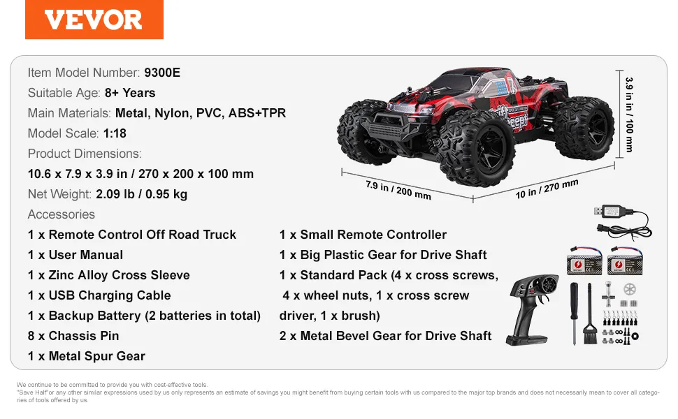 A VEVOR 1:18 méretarányú RC terepjáró fém kardántengellyel, 20 000 fordulat/perc fordulatszámú nagysebességű motorral, fokozatmentes sebességszabályozással és nagy tapadású gumiabroncsokkal rendelkezik, amelyek segítenek meghódítani minden terepet. A tartós kialakítás és a hosszú akkumulátor-üzemidő végtelen szórakozást és izgalmat biztosít, így minden vezetési élmény tele van meglepetésekkel!