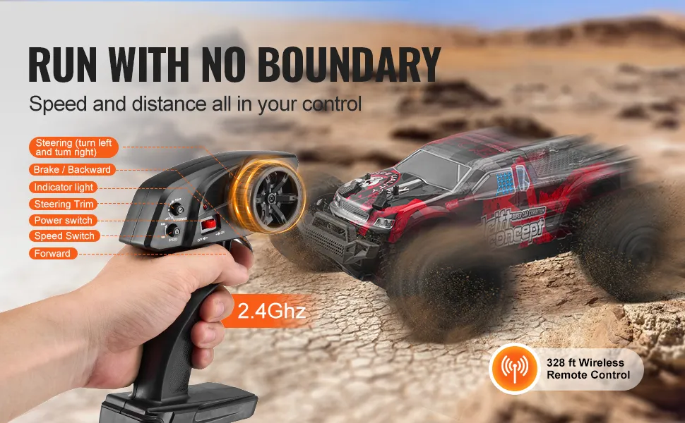 • Fokozatmentes sebességváltó: Az alacsony sebességű kúszósebességtől a nagy sebességű versenyzésig (akár 36 km/h-ig), ennek a 4x4 terepjáró RC autónak a fokozatmentes sebességszabályozása minden gyermek számára tökéletes, a kezdőktől a tapasztalt versenyzőkig. A gyerekek tetszésük szerint választhatják ki a megfelelő sebességet egy biztonságos vagy izgalmas versenyhez.