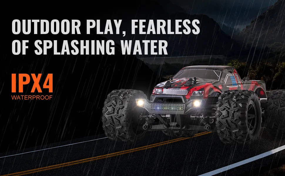 Ne aggódj az esős napok vagy a sáros helyek miatt, az IPX4 vízállóságnak köszönhetően a távirányítós monster truckunk garantáltan új szintre emeli a szabadtéri felfedezések élményét.