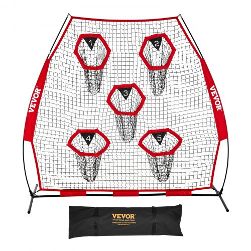 VEVOR 2133,6 x 2133,6 mm-es futballedző dobóháló, edződobó célzóháló 5 célzsebes hálóval, csomómentes háló, pántokkal és hordozható hordtáskával, javítja a QB dobási pontosságát