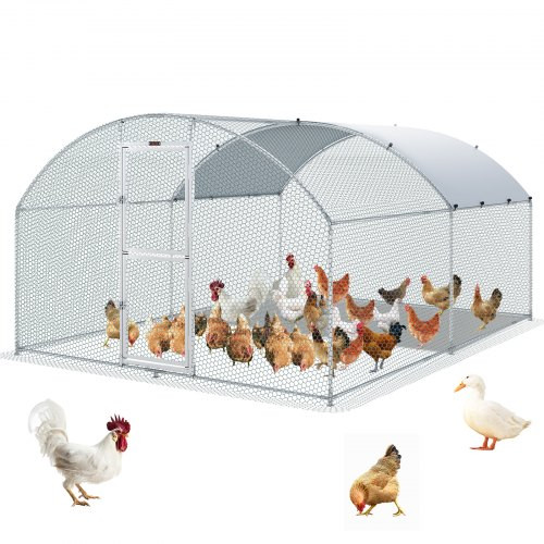 VEVOR nagy fém tyúkól kifutóval, gyalogos tyúkól udvarra, vízálló tetővel, 13,1 x 9,8 x 6,6 láb, kupolatetős nagy baromfiketrec tyúkólhoz, kacsaólhoz és nyúlfuttatóhoz, ezüst színű