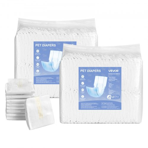 VEVOR eldobható hím kutyapelenkák, szuper nedvszívó hím kutyafóliák, 360°-os szivárgásmentes hasi szalagok nedvességjelzővel tüzelő, kiképző, inkontinencia alatt álló kutyusoknak - M, 96 darab (2 db 48 db-os csomag)