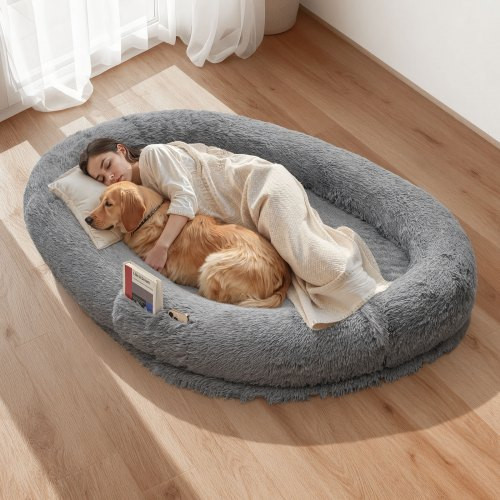 VEVOR emberi kutyaágy, 68,50 x 46,46 x 9,45 hüvelykes ortopédiai memóriahabos emberi méretű kutyaágy, emberi kisállat ágyak oldalsó zsebbel, fogantyúval és cipzárral, kivehető, mosógépben mosható kutyaágyak embereknek, sötétszürke