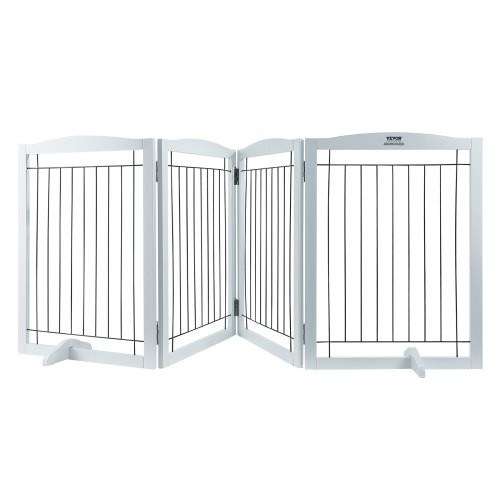 VEVOR szabadon álló kutyakapu, 32" Ma x 96,5" Szé szabadon álló kisállatkapu, 4 paneles összecsukható kutyakapu széles és keskeny átjárókhoz, bővíthető kutyakorlát csendes lábtartóval beltéri használatra, fehér