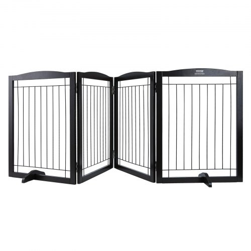 VEVOR szabadon álló kutyakapu, 32" Ma x 96,5" Szé szabadon álló kisállatkapu, 4 paneles összecsukható kutyakapu széles és keskeny átjárókhoz, bővíthető kutyakorlát csendes lábtartóval beltéri használatra, barna