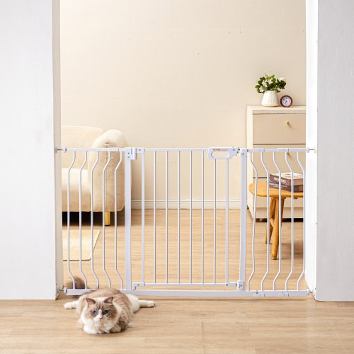 VEVOR babakapu, 29,5"-51" extra széles, 30" magas, kutyakapu lépcsőkre, ajtókhoz és házhoz, könnyű léptető automata záródású gyermekkapu, kisállat biztonsági kapu nyomásos rögzítőkészlettel és fali rögzítőkészlettel, fehér