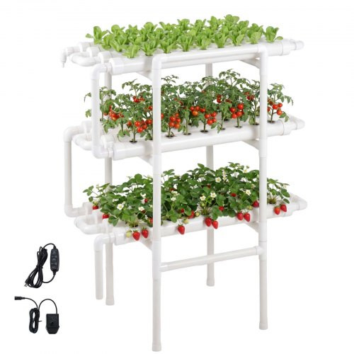 VEVOR hidroponikus termesztőrendszer-készlet, 3-szintes, 108 telephelyes UPVC csőből készült hidroponikus termesztőkészlet időzített öntözéssel, napfény- és fényvédő csövekkel, beltéri otthoni kerti zöldségültetési termesztőkészle