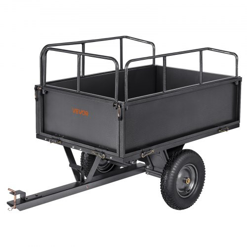 VEVOR kerti utánfutó, 17 köbláb és 272 kg teherbírás, ATV UTV szállító utánfutó, vontatott acél dömper kocsi 16"-os gumiabroncsokkal, kézzel vagy lábpedállal, nagy teherbírású kerti utánfutók fűnyíró traktorhoz