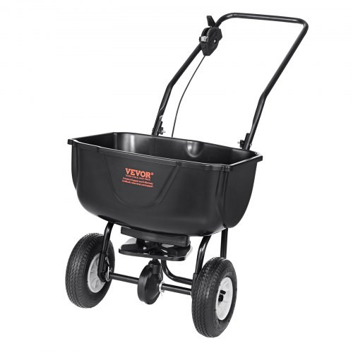 VEVOR Broadcast Spreader, 60 lB-s, mögöttes gyepszóró 8"-es kerekekkel, acél tolóműtrágyaszóró, kerti vetőgép és sószóró, lakossági használatra, farmra és kemény terepre tervezve, fekete