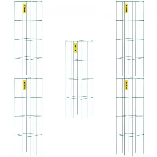VEVOR paradicsomkalitkák, 29,5 cm x 29,5 cm x 117,5 cm, 5 db-os négyzet alakú növénytartó ketrec, zöld PVC-bevonatú acél paradicsomtornyok kúszó zöldségekhez, növényekhez, virágokhoz, gyümölcsökhöz