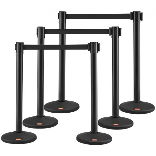 Szélesített, betonnal töltött műanyag alapokat használunk, amelyeket csúszásgátló gumitalpakkal egészítünk ki a tartósság biztosítása és a felborulás megakadályozása érdekében. Biztonságos, stabil és hosszú élettartamú. A visszahúzható hevederekkel ellátott VEVOR oszlopok a legjobb választás a helykihasználáshoz.