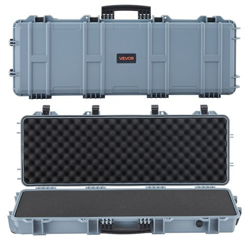 VEVOR kemény puskatok, zárható puskatok előre vágott habszivacsokkal, 108,9 cm-es fegyvertároló kerekekkel, IP67 vízálló és porálló, mozgatható nagyméretű pisztolytároló puskákhoz, sörétes puskákhoz, airsoft fegyverekhez, szürke