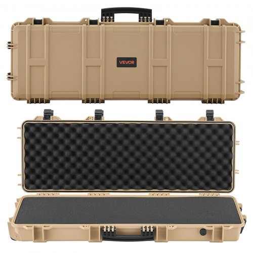 VEVOR kemény puskatok, zárható puskatok előre vágott habszivacsokkal, 108,9 cm-es fegyvertároló kerekekkel, IP67 vízálló és porálló, mozgatható nagyméretű pisztolytároló puskákhoz, sörétes puskákhoz, airsoft fegyverekhez, khaki sz