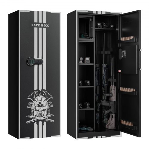 • Feszültségálló, strapabíró szekrény: A puskaszéf teljes acélszerkezettel, 1,1 mm vastag, feszülésálló ajtólemezzel és 2 tömör rögzítőcsavarral rendelkezik a feszülés és a sérülések elleni védelem érdekében. A hátulján előre fúrt rögzítőfuratok lehetővé teszik a falra szerelést (összeszerelés szükséges).
